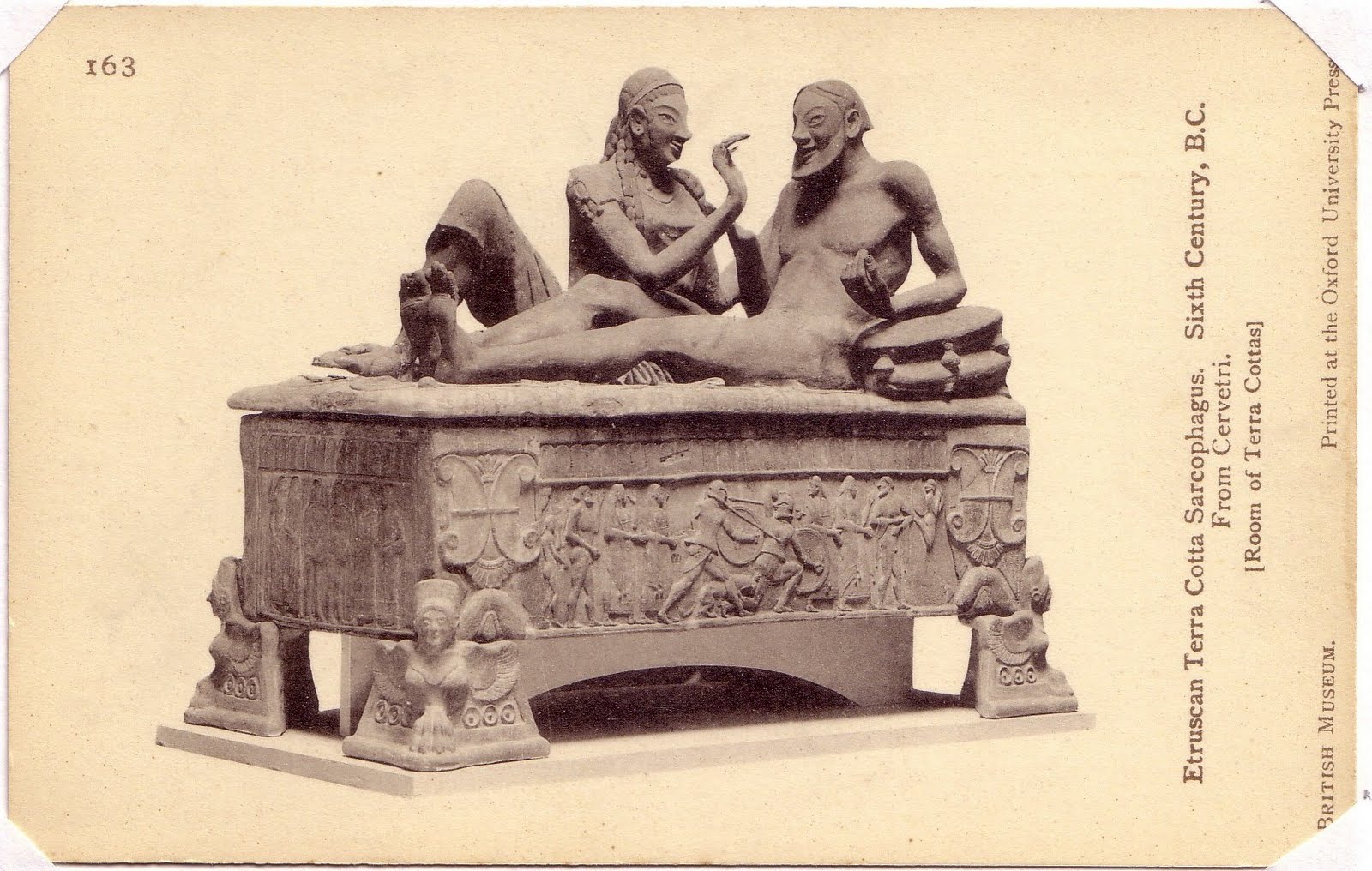 En 1871 el Museo Británico compró un buen número de antigüedades a un italiano llamado Alessandro Castellani. El mejor objeto de aquella colección era un sarcófago de terracota de tamaño considerable, cuyo origen era situado en el siglo VI a.C. Castellani declaró que un tal Pietro Pennelli lo había encontrado en una excavación en Cervetri (Etruria).