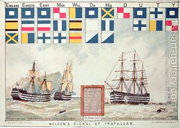 Comenzada la batalla, aquellos hombres lucharon durante tres horas y cumplieron, llevando a Inglaterra a la victoria sobre a la armada aliada. Algunos entregaron su propia vida en el empeño, como fue el caso del propio Nelson. Antes de morir fue informado de que catorce barcos enemigos habían arriado sus banderas y que por parte de Inglaterra solo había que lamentar la pérdida de un navío. Nelson murió sabiendo que había vencido y así lo constata su últimas palabras conscientes: «Gracias a Dios, he cumplido con mi deber«. Su cuerpo fue conservado en un barril de coñac hasta que llegó a su isla.Y desde aquel día, la frase que envió al resto de su flota al comenzar la batalla de Trafalgar es recordada.